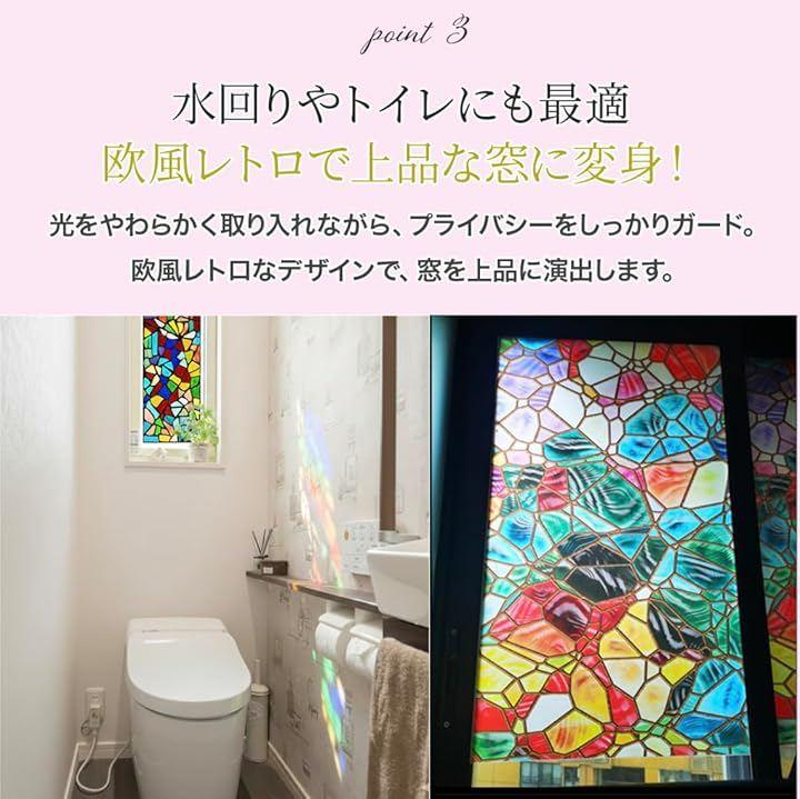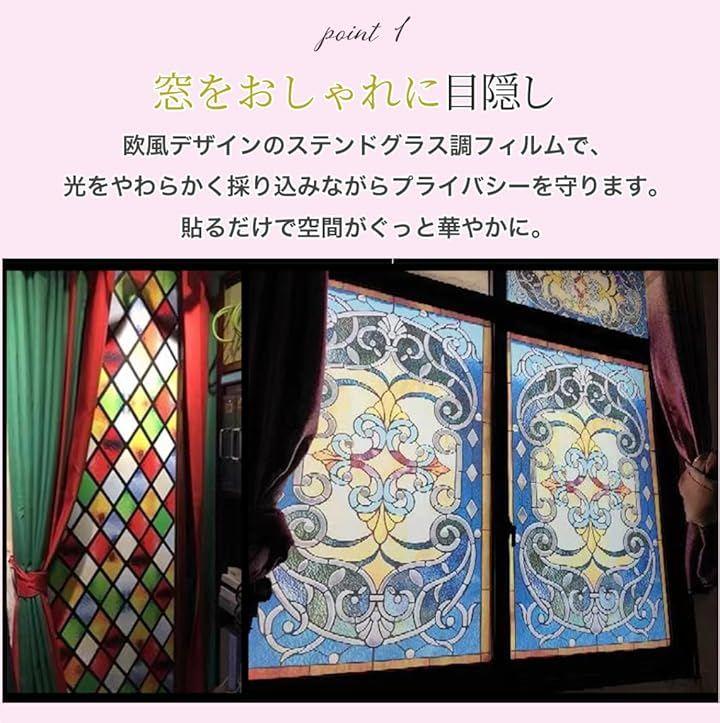 おしゃれな目隠しシートとして、窓や出窓、玄関 ドアなどのガラスに貼るだけ簡単。