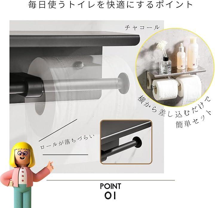 「便利な棚付き」このペーパーホルダーには実用的な棚が付いており、スマートフォンや小物を置くのに最適です。
