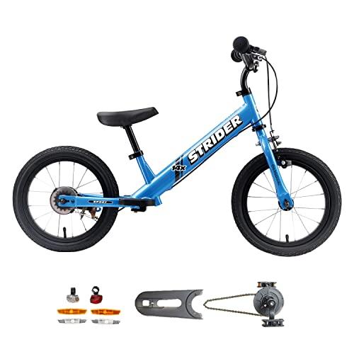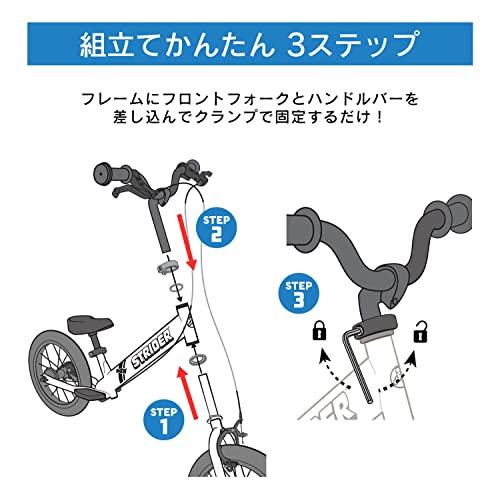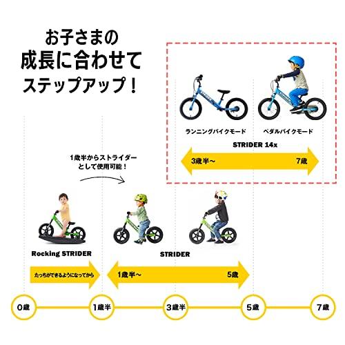 対象年齢:3歳半~7歳くらい 体重制限:36kgまで シート高の調整範囲:38~55cm(股下40~58cm) 説明:14インチホイールと着脱式ペダルユニットを搭載したストライダー14xは軽量で取り回しがしやすく、お子さまのファーストペダルバイクに最適です。 注意:この商品は組み立ておよびブレーキの調整、タイヤの空気入れが必要です。空気入れのバルブは米式です。