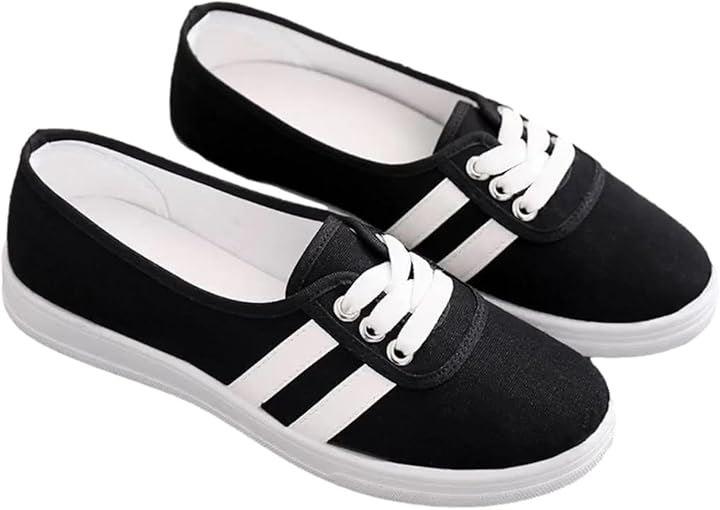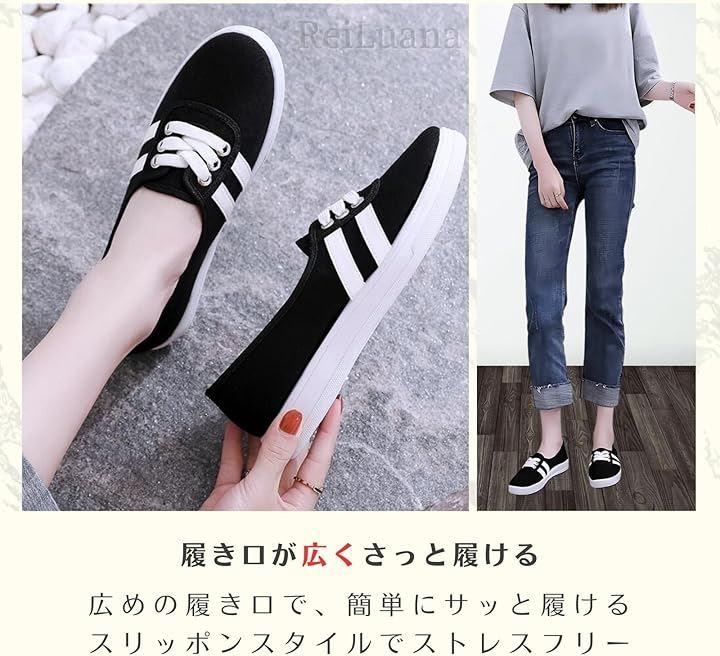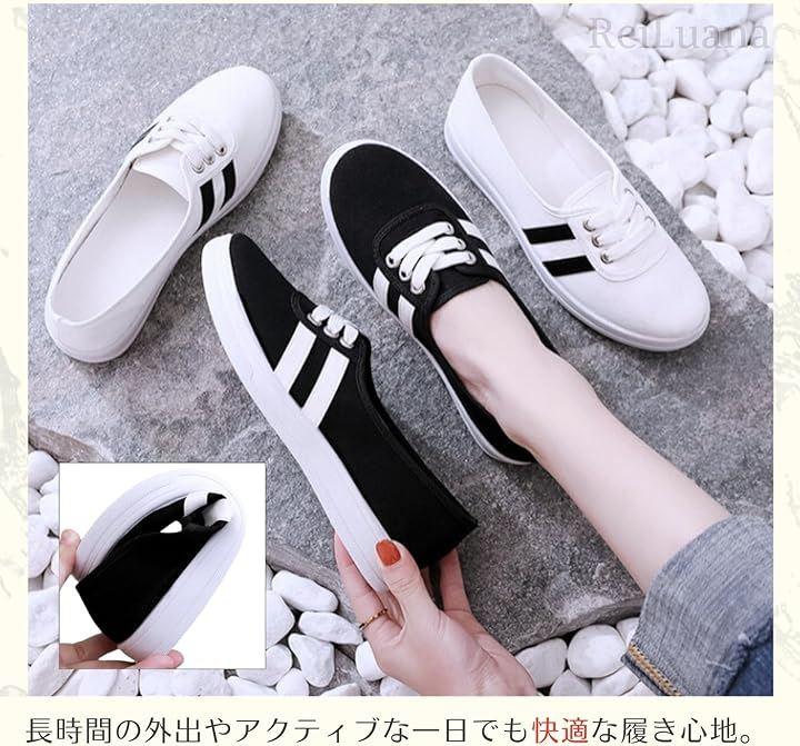 「履き心地」 質感の良いキャンバス生地を使用したスニーカー風デザインが特徴。