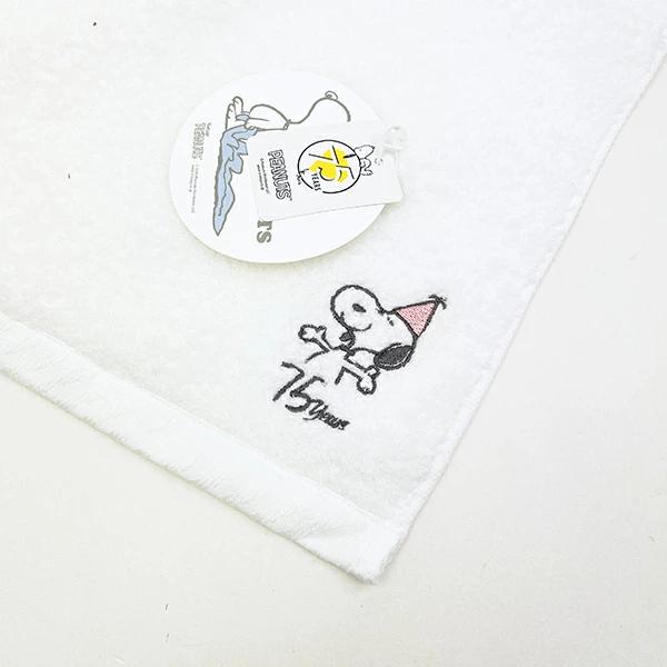 スヌーピーのバスタオルです♪王冠を被ったスヌーピーの75周年限定デザインがとってもキュート♪綿毛のようにふわふわ柔らかく軽くて綿100%なので、赤ちゃんにも安心して使えますよ♪スヌーピーと一緒に周年をお祝いしましょう☆彡