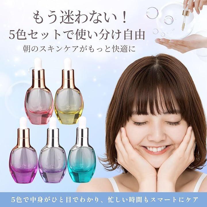 5色セットで使い分け簡単:化粧水、乳液、エッセンシャルオイルなどを用途別に分けられる詰め替えボトル5色セット。