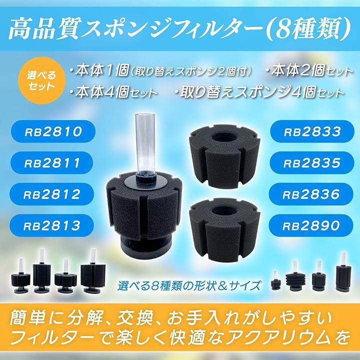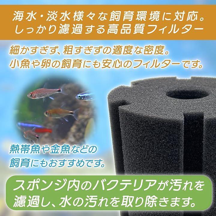 「濾過能力の高い高品質フィルター」淡水、海水、鑑賞用、食用飼育にいたるまで幅広い分野でご使用いただける濾過能力と水の循環に優れたスポンジフィルターです。