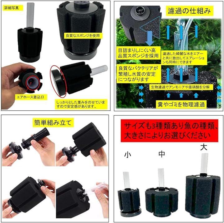 「選べる3サイズ 小、中、大 選べる個数 2個or4個セット」バイオスポンジフィルター ろ過 ろ材 スポンジ スポンジフィルター