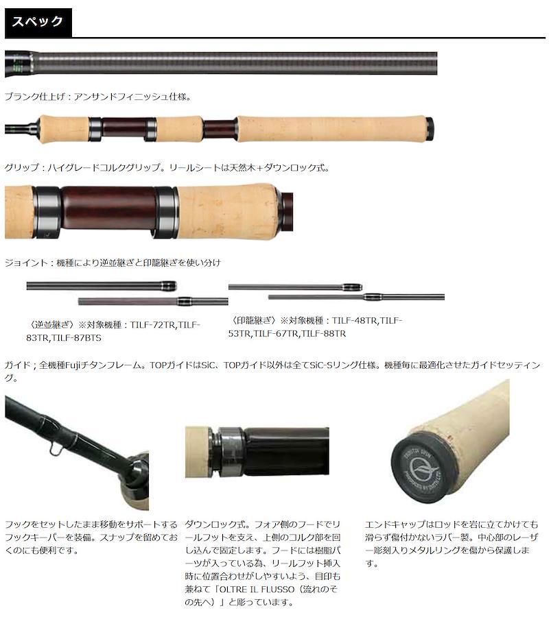 【特徴】<br>●メインブランク:アンサンドフィニッシュ●ガイド:チタンフレームSiC-S ※トップガイドのみSic※機種名末尾のTRはトゥイッチ&リトリーブの略称です。※機種名末尾のBTSはボトムタップ・スプーニングの略称です。