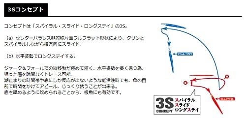 コンセプトは3S「スパイラル・スライド・ロングステイ」。ジャーク後のラインスラッグを瞬時に出すことにより、初期動作でクリンとスパイラルしながら横方向に飛び、非対称の形状により 横向きになってスライドします。潮流や船の流れ方により異なりますが、最終的にはローリングしながら縦にゆっくり沈下したり、 斜め後ろ方向に逆スライドして沈みます。この沈下速度が非常に長くなるよう設計されたのが「CBムラマサ3S」です。つまり「短いゾーン(層)に長時間横向きで存在し続けながらアピールすること」を可能にしました。抵抗を考慮し、裏面目玉までも排除した非対称片面フルフラット形状。