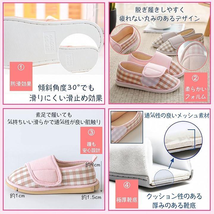 入院中・介護施設・老人ホームなど特に転倒などに注意を払いたい時、通常のルームシューズとしても室内履きに大変にお役に立ちます。