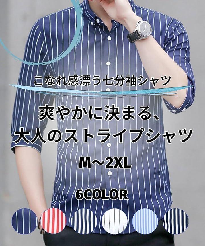 このメンズカジュアルシャツは、春夏の季節にぴったりな軽やかな着心地で、七分袖の襟付きデザインが特徴。