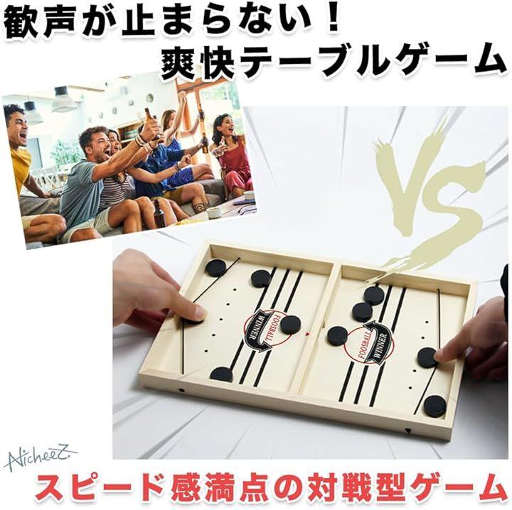 「スピード感と爽快感」ゴムバンドでパックを飛ばすたびに歓声が上がる。スピード感満点のゲーム性で大人も夢中にさせます。