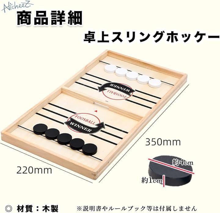 「商品内容」 卓上ホッケーボードゲーム 材質:木製 本体サイズ:横/約22cm 縦/約35cm 高さ/約2.5cm パックサイズ:直径/4cm 厚さ/1cm *低価格での販売実現のため、簡易梱包にて商品お届けの場合がございます。