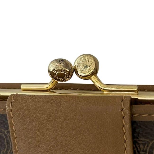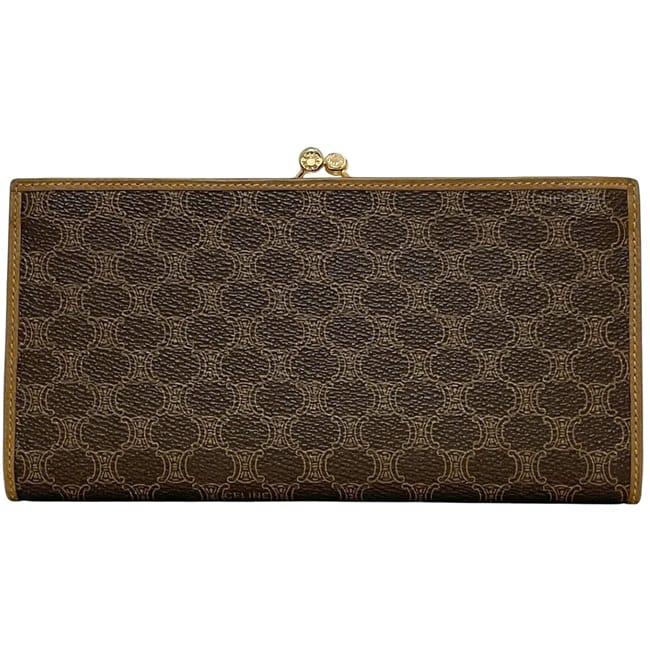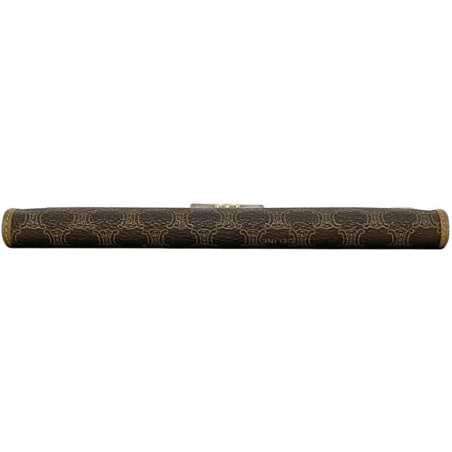 ☆---- 商品について ----☆セリーヌ 二つ折り 長財布 ec-24646 ブラウン マカダム がまぐち PVC レザー 中古 M05 CELINE がま口 ホック ロゴ 総柄 レディース メンズ 男女兼用 シンプル 定番 人気 ゴールド金具 薄型 小銭入れ有 茶色 ワンポイント ブランド 本物 鑑定済み