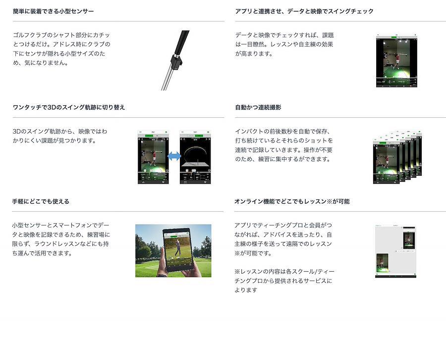 グリップに小型センサーをつけてスイングする事でソニーの高いセンシング技術であなたのスイングを解析します!
