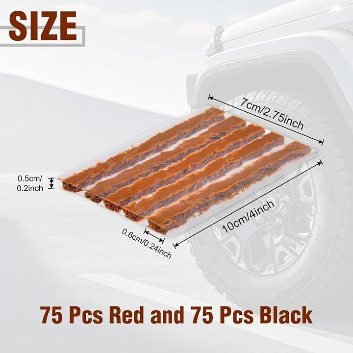 パッケージ内容: タイヤ パッチ ストリップ 150 個 (黒のストリップ 75 個と赤のストリップ 75 個)。