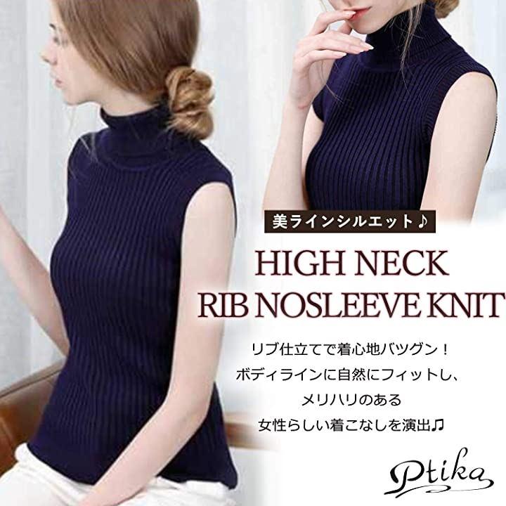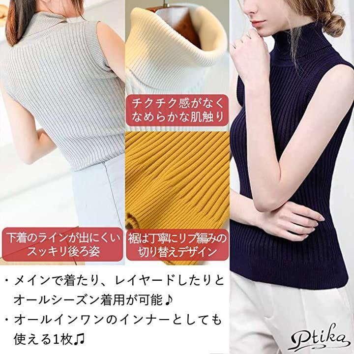Ptikaタートルネックノースリーブニットセーターハイネックレディースアクセサリー2点セット