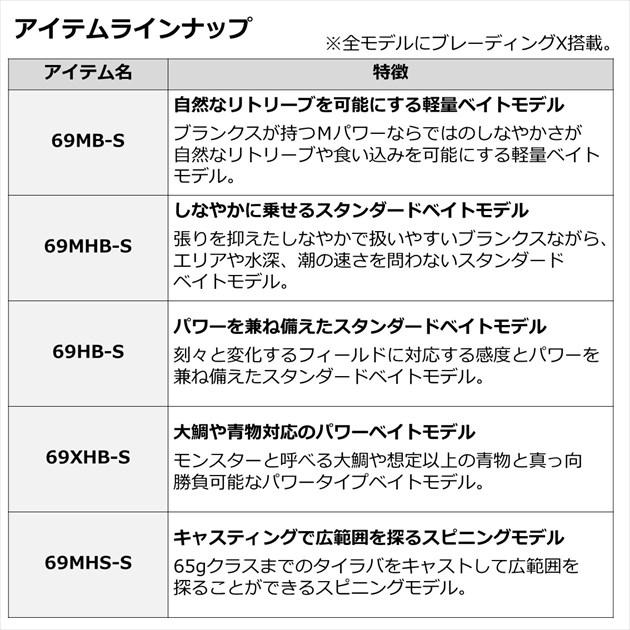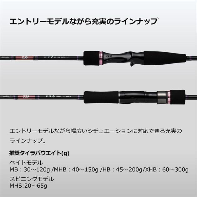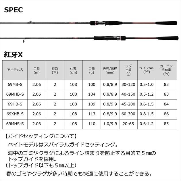 基本性能が光るタイラバエントリーモデルの決定版。■69MHS-S・・・キャスティングで広範囲を探るスピニングモデル。65gクラスまでのタイラバをキャストして広範囲を探ることができるスピニングモデル。【ダイワ キャスティング情報2022】【22newdaiwa】 全長:2.06m 継数:2 仕舞寸法:108cm 自重:110g 先径:1.0mm 元径:9.9mm ジグ自重:20-65g ラインNo PE:0.6-1.2 カーボン含有率:85% ※実物と色が違って見える場合があります。あらかじめご了承下さい。