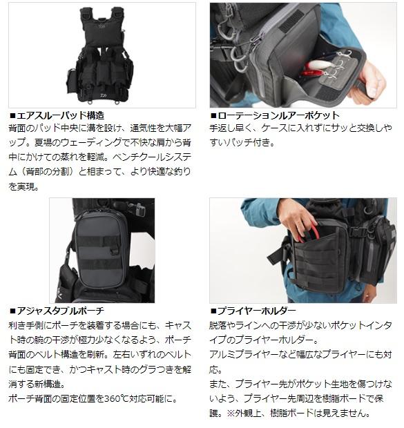肩荷重を腰荷重へ分散仕様を採用。ベンチクールゲームベストの進化は止まらない。豊富な種類のルアーをポケットに詰め込み、肩で担いでいた点を腰のランバーサポートベルトへ荷重を分散させる仕様を採用。肩への負荷が大幅に軽減。左腰ポケット前面にローテーションポケットを新たに配備し、ルアーケースに戻す手間が省け手返しよくルアーチェンジが可能に。背中のパッド中央に溝を設け、通気性を確保することにより夏場のウェーディングで不快な肩から背中にかけての蒸れを軽減。ベンチクールシステム(背部の分割)と相まって、より快適な釣りを実現。 サイズ:フリー 着丈:48cm ※実物と色が違って見える場合があります。あらかじめご了承下さい。