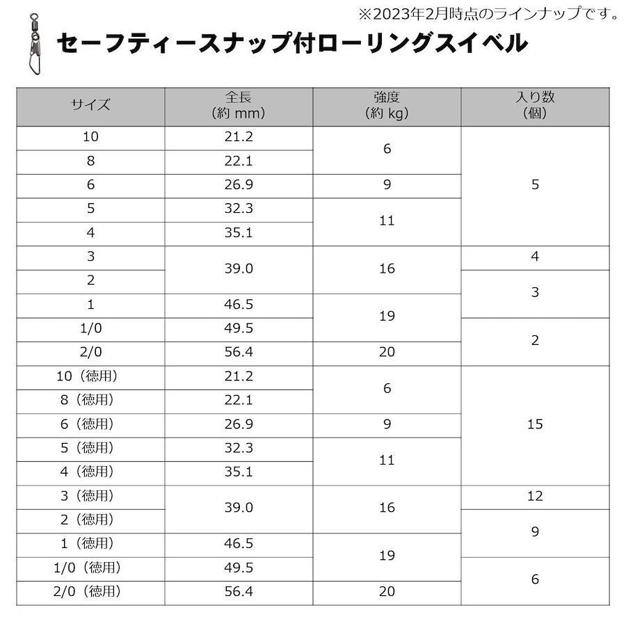 驚異の回転力で好評のDスイベルSS親子ローリングスイベルで 従来は徳用だけのラインナップでしたが、低価格でお求めやすい入数のシリーズを追加今回は従来のOPPパック入りでしたが、減プラスチック設計の紙台紙に変更環境に配慮した新台紙【免責事項】※メーカーのリニューアルに伴い仕様・カラー等が予告無く変更になる場合がございます。新パッケージでお届け致します事ご了承願います。