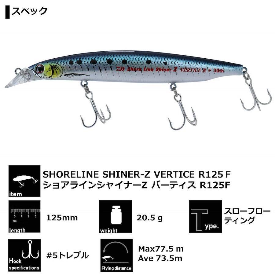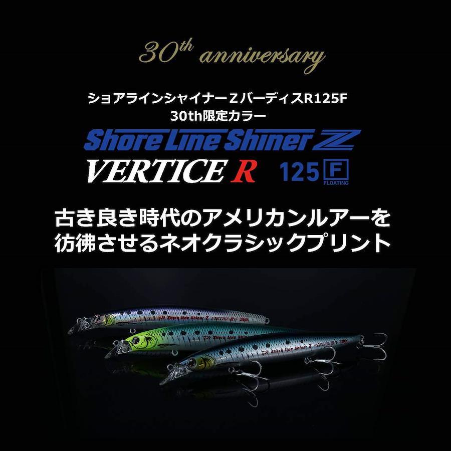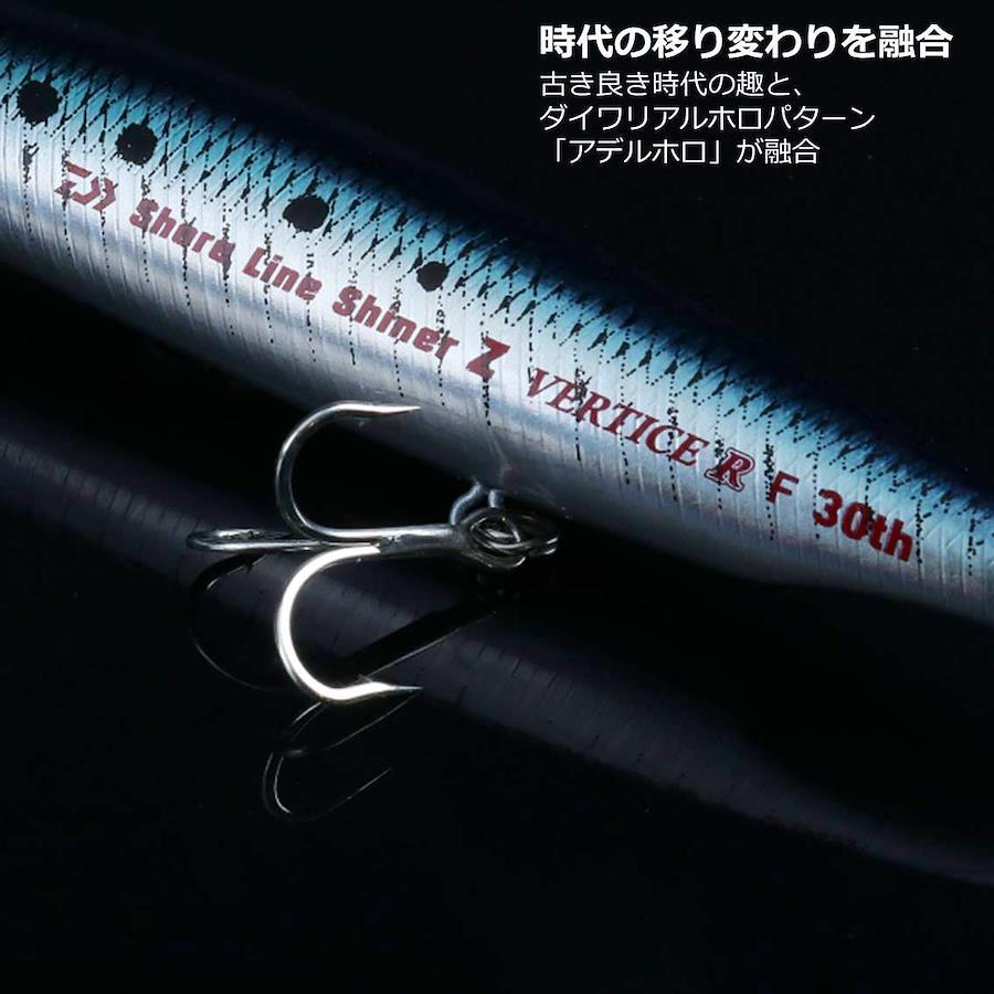 ダイワシーバスミノーの定番「ショアラインシャイナー」シリーズ発売30周年を記念した限定カラー。古き良き時代のアメリカンルアーを彷彿させるネオクラシックプリント。左側面には赤字で映える「SHORELINE SHINER Z R 30th」のロゴ入り。現在主流の写真転写リアルカラーには無い古き良き時代の趣と、ダイワリアルホロパターン「アデルホロ」が融合した、時代の移り変わりを感じ取れる独特のカラーとなっております。