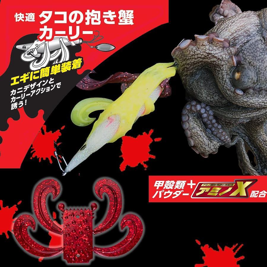 タコエギに装着するワーム。蟹のシルエットとクローアームで誘い、柔らかい抱き心地と強い匂いで抱かせます!