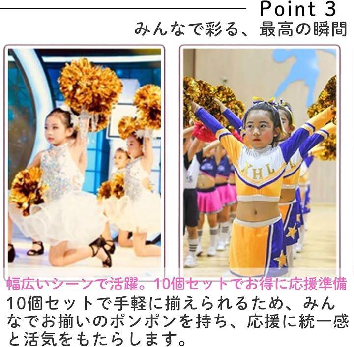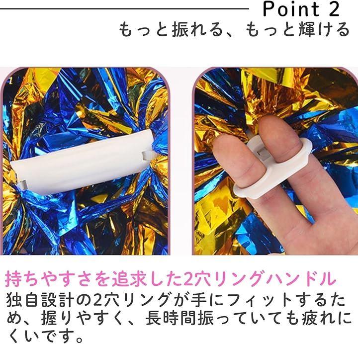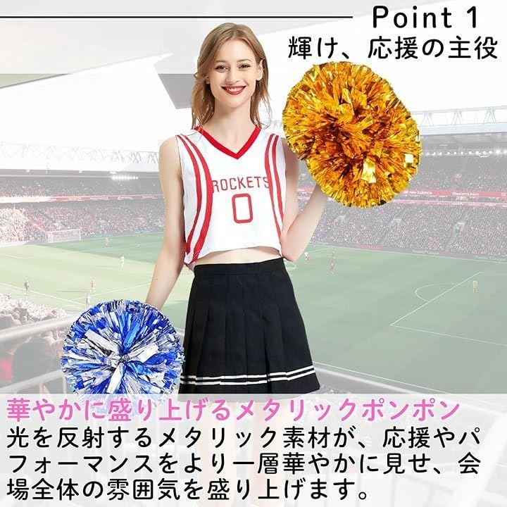 「華やかに盛り上げるメタリックポンポン」鮮やかなPET素材のメッキ加工が、光を反射し動きに合わせて輝きます。
