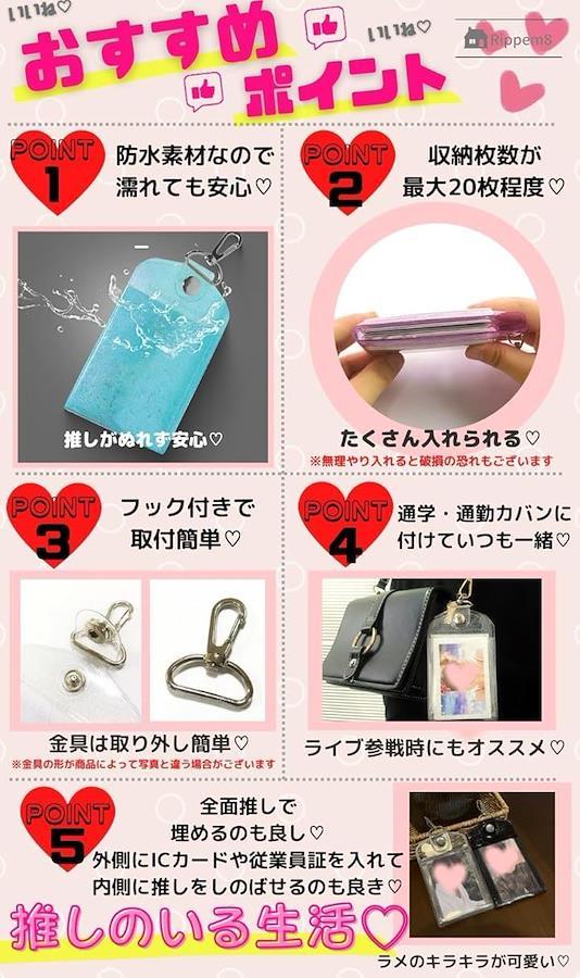 ) ・推しの写真と定期券やICカードなど一緒に持ち歩くのも良き。推しといつも一緒、推ししか勝たん。 ・通学・通勤のカバンにつけるのはもちろん、ライブ参戦時にもオススメ。推し活の必需品。