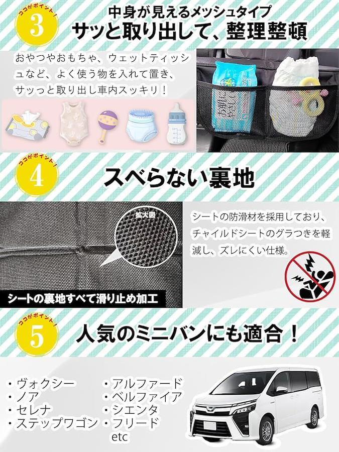 「ミニバンにもぴったりフィット」子育て世代に大人気のミニバンのシートにもぴったりのサイズのチャイルドシートカバーです。