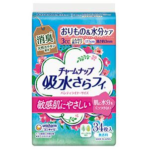 ■商品概要メーカー:ユニ・チャーム商品名:チャームナップ ふんわり肌 おりもの&水分ケア(34枚)区分:日用雑貨内容量:34枚商品概要:極細繊維で空気を編みこんだ「エアクッションシート」がふわふわな肌ざわりとなり、肌負担を低減。お肌にやさしくさらさらスピード吸収で気持ちよく過ごせる吸水ケア専用品●パンティライナーの約5倍水分吸収●消臭するポリマー配合(3)天然カテキン配合の抗菌シート搭載吸収量約3ccJANコード:4903111902361商品コード:213802311