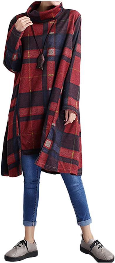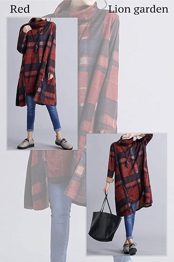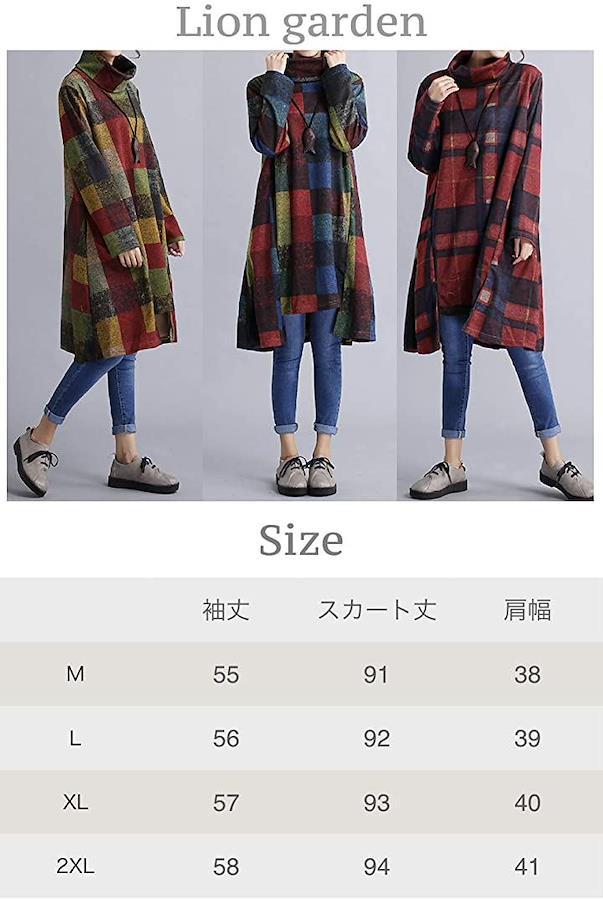 タートルネック&チェック柄が可愛いチュニックワンピースが登場です。