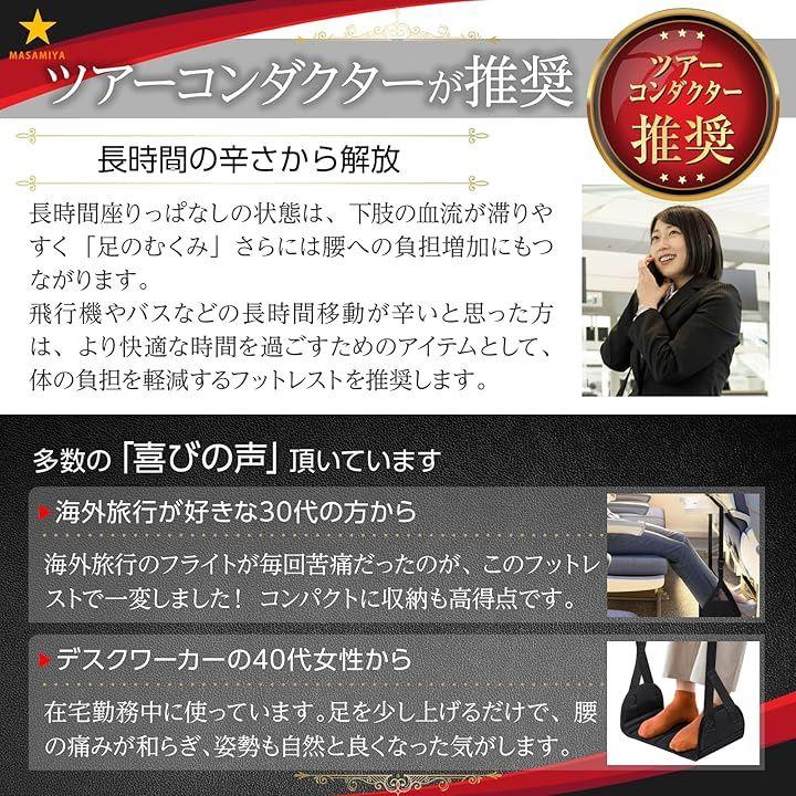 より快適な旅行を過ごすためのアイテムとして身体の負担を軽減するフットレストを推奨します。
