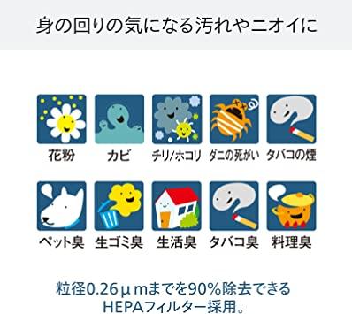 いつでもどこでもきれいな空気を。マイ花粉キャッチャー!USB給電&コンパクトでパーソナル使用に最適。集じん効果の高いHEPAフィルター。脱臭効果のある活性炭を搭載。気軽に置ける500mlボトルサイズ。(製品寸法:W80×D80×H170mm)付属品:USBケーブル×1、HEPAフィルター×1