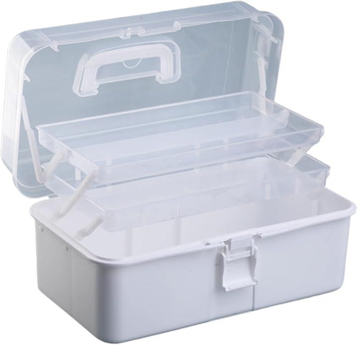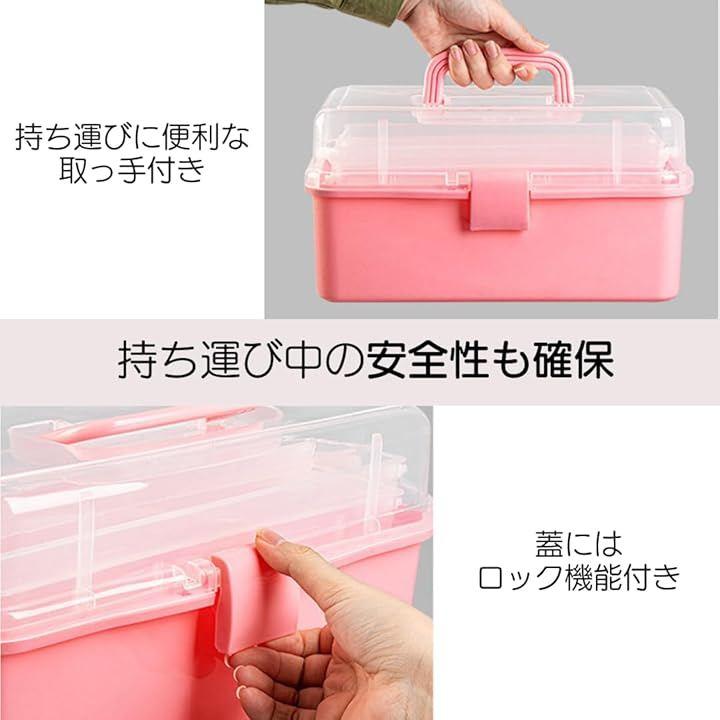 3段式で、裁縫道具や手芸用品から化粧品まで、多様なアイテムをきれいに収納。