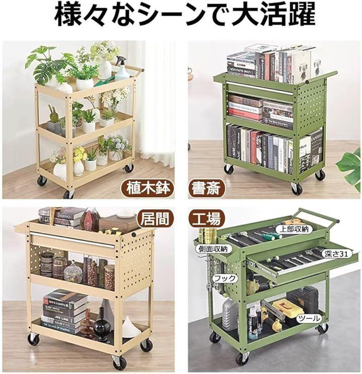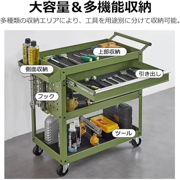 プロフェッショナルな作業現場から、DIY愛好家のガレージまで、幅広いシーンで活躍する実用的なツールワゴンです。