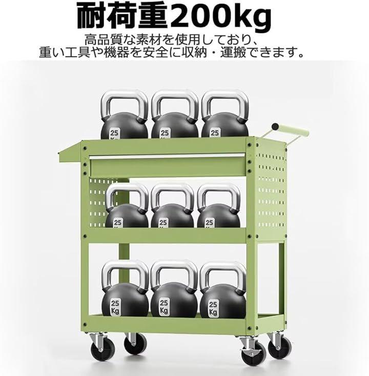 最大荷重200kgに対応しているため、重い工具や資材も安心して収納・運搬できます。