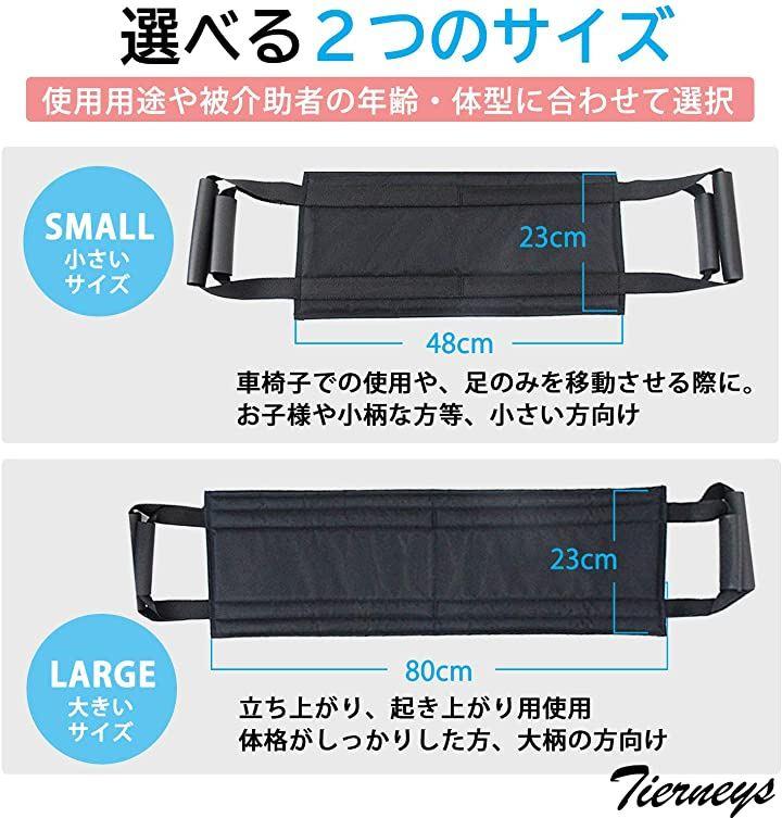 足の移乗やお子さん、ご老人を対象としたSサイズと、体の大きい成人男性にも使用できるLサイズの2サイズからお選びいただけます。
