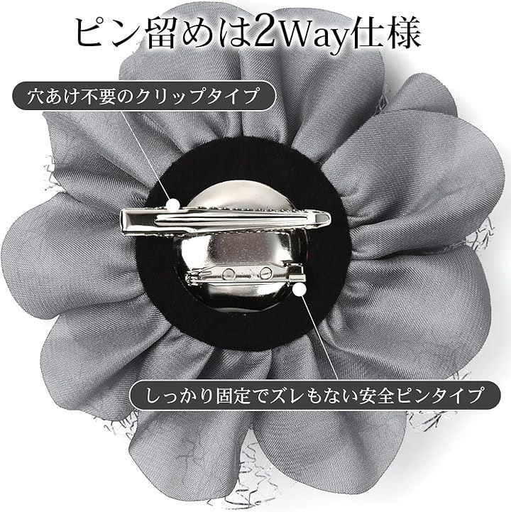 「留め方は2タイプ」ピンとクリップの両方可能なコサージュ。