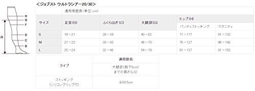 段階的圧迫により血液環流を促進すると共に、フィット感・履きやすさを向上させました。独自の素材で実現した透明感です。 足首圧迫圧(hPa): 20~27(15~20mmHg) サイズ: S 足首: 18~21cm ふくらはぎ: 28~38cm 太腿: 40~62cm 素材:ポリアミド・PU(ポリウレタン)・シリコーン 色:シルキーベージュ 入数: 1箱(1足入)