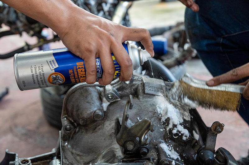 ウォーターベース・泡タイプ・油・スス汚れ・ヤニ、接着剤などを素早く除去します。150cm離してスプレーして下さい。細かい泡が塗布した表面の奥まで浸透し汚れ等を素早く除去します。機器がスムーズに動き長持ちします。
