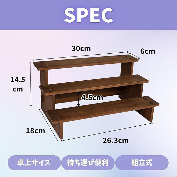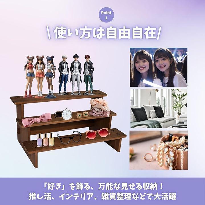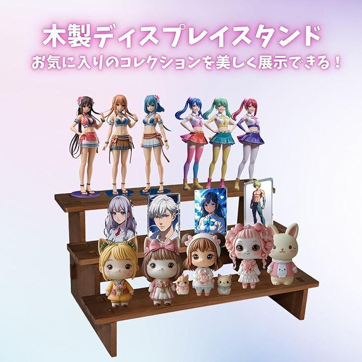 お気に入りのフィギュアやアクリルスタンド、雑貨を美しく展示できる木製ひな壇。