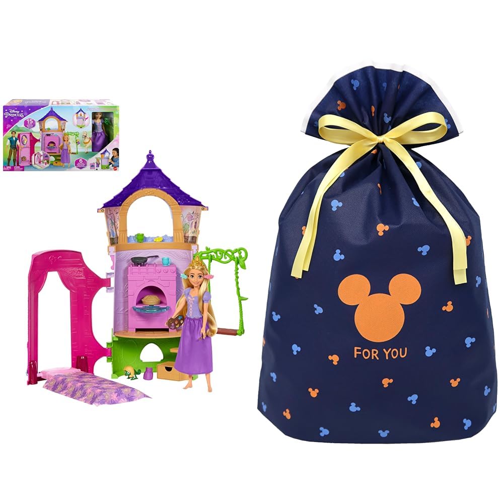 ディズニー(Disney)/ディズニープリンセス(Disney Princess) ラプンツェル(とうのプレイセット)【着せ替え人形・塔 】【ハウス、アクセサリー付き】 【3才~】 HLW30 + インディゴ Disney ミッキー ミツマル ラッピング袋 3L フォーユー ネイビー DG954