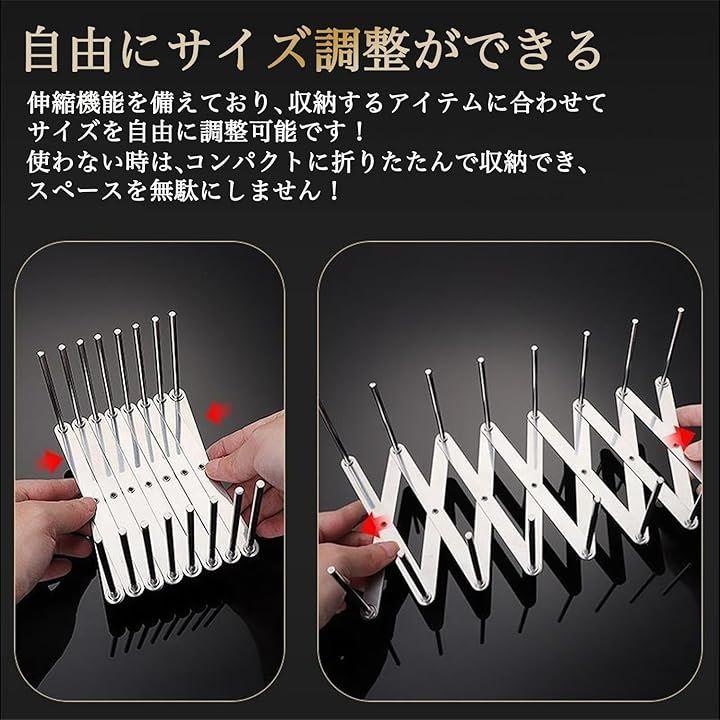 「伸縮自在でコンパクト収納」 アコーディオンのように伸縮可能で、キッチンのスペースに合わせて長さを自由に調整できます。