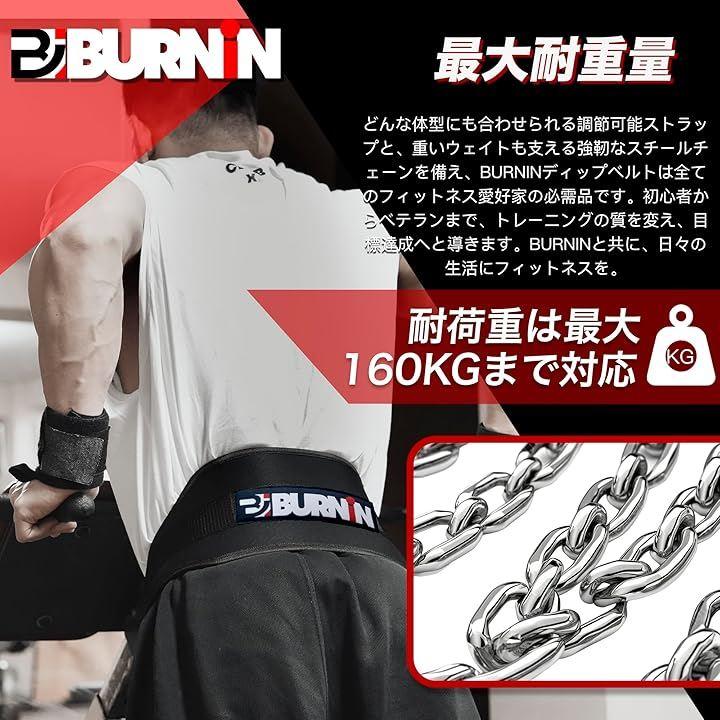 BURNINディッピングベルトは、高耐久のユニボディ構造を採用し、安定性と安全性を追求した加重トレーニング用パワーベルトです。