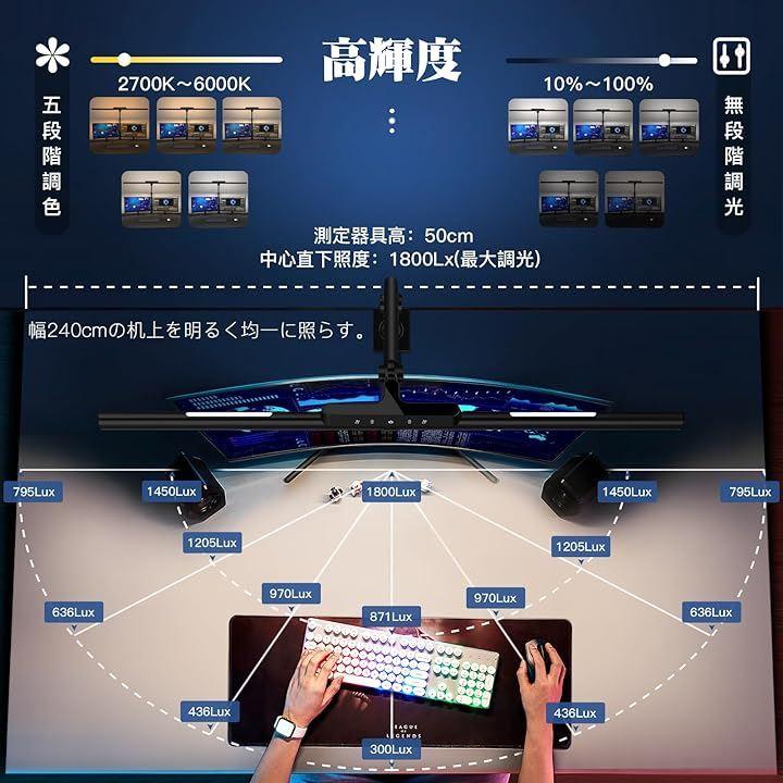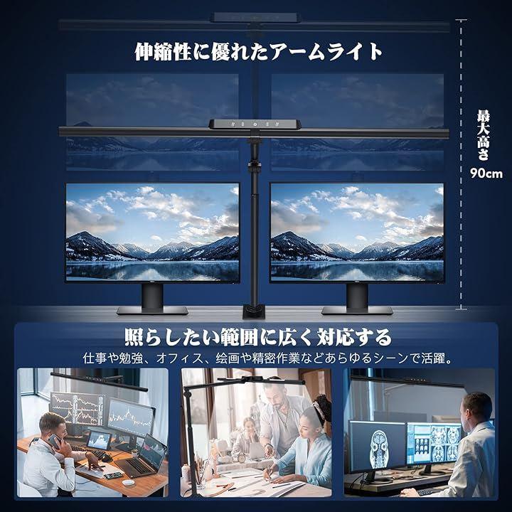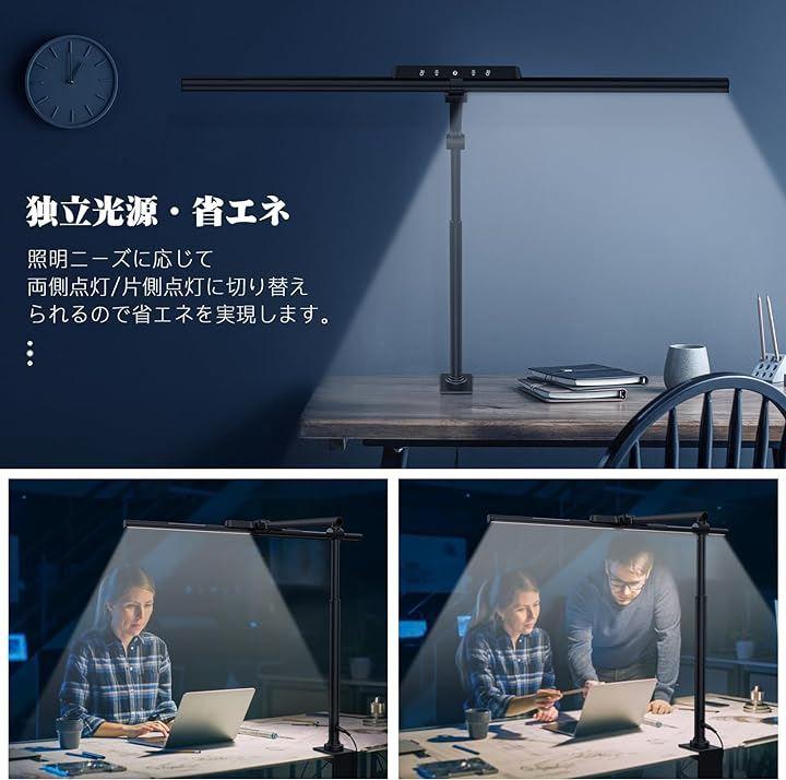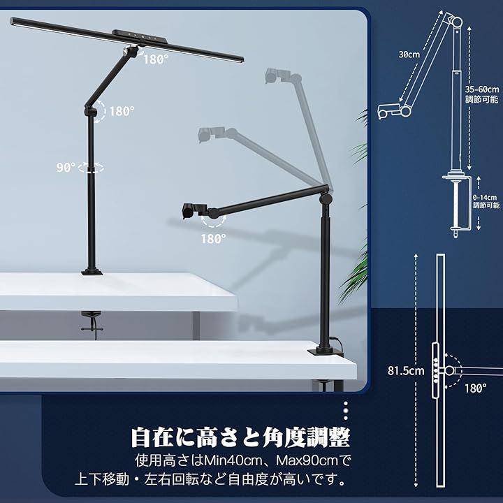 左右回転・上下移動で自在に角度調整可能で、幅80cmもある光源とランプヘッドに配置された182個LEDチップにより、デスク上を均一に照らし、読書や勉強に明るい照明環境を提供します。