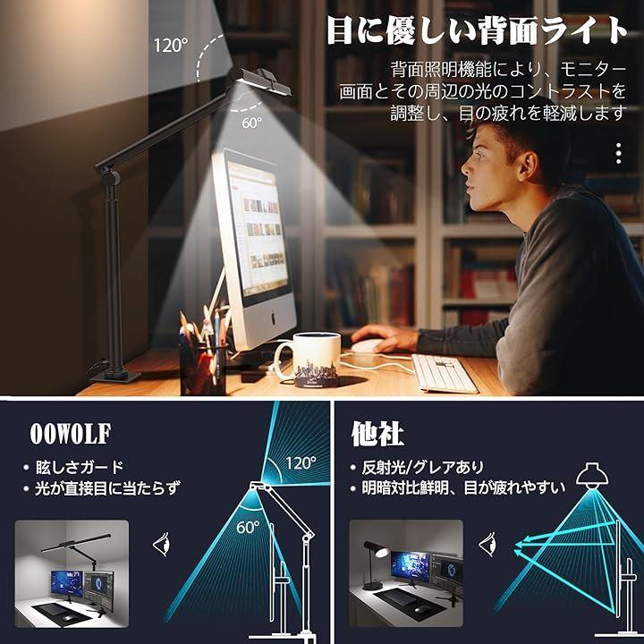 背面ライトを点灯すると、上方への光を加わり明るい空間が広がり、目の快適さが向上し仕事や勉強の効率がアップします。
