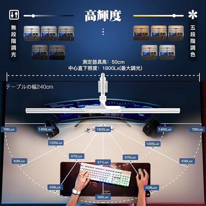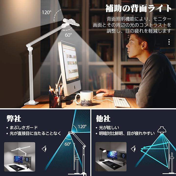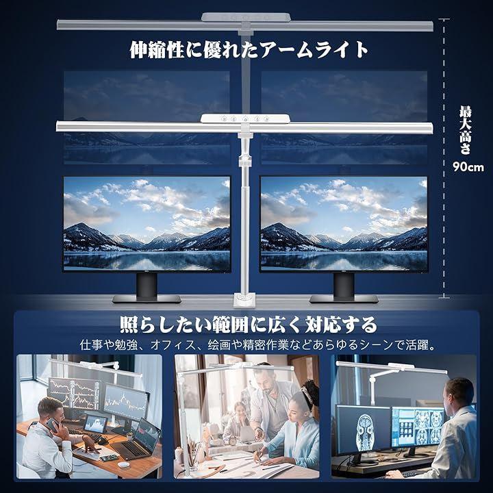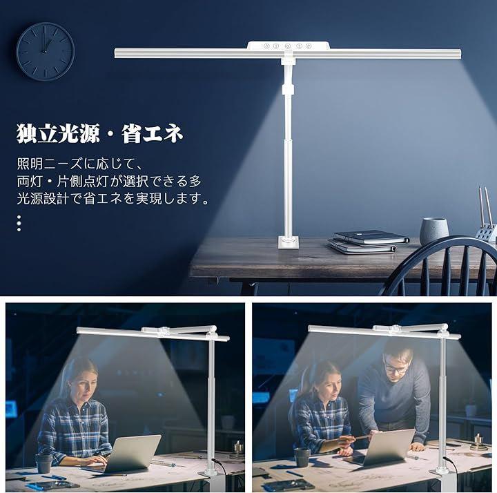 左右回転・上下移動で自在に角度調整可能で、幅80cmもある光源とランプヘッドに配置された182個LEDチップにより、デスク上を均一に照らし、読書や勉強に明るい照明環境を提供します。
