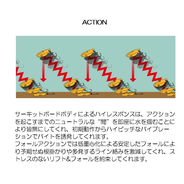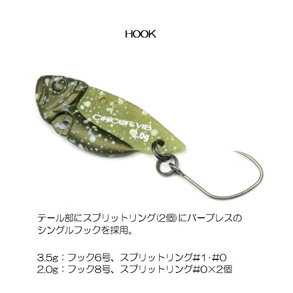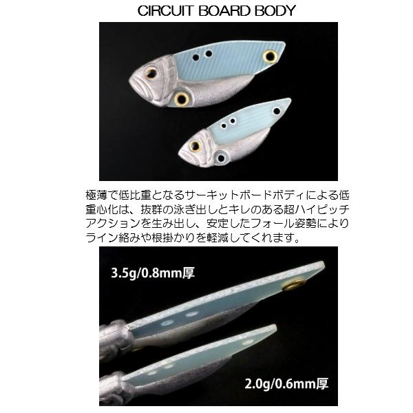 メタルを超えた鉄板バイブ。極薄で低比重のサーキットボードを採用した低重心ボディにより、抜群の泳ぎ出しとキレのあるハイピッチ&ハイレスポンスをみせる「サーキットバイブ」を、エリアやネイティブに生息するトラウトにアジャストさせたメタルバイブレーションです。また低重心ボディは安定した飛行姿勢と高いアキュラシー性能、そして安定したフォール姿勢によりライン絡みや根掛かりを軽減してくれます。 全長(mm):27 重量(g):2.0 タイプ:メタルバイブレーション フック:8号 リング:#0×2個 ※実物と色が違って見える場合があります。あらかじめご了承下さい。