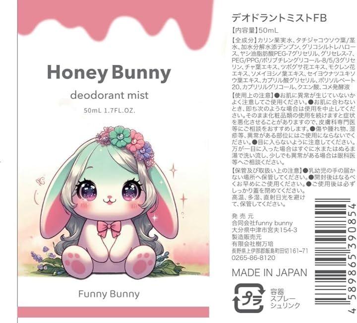 「商品詳細」 ・内容量:50ml ・全成分:[画像参照] ・販売名:デオドラントミストFB 「注意事項」 ・お肌に異常が生じていないかよく注意してご使用ください。