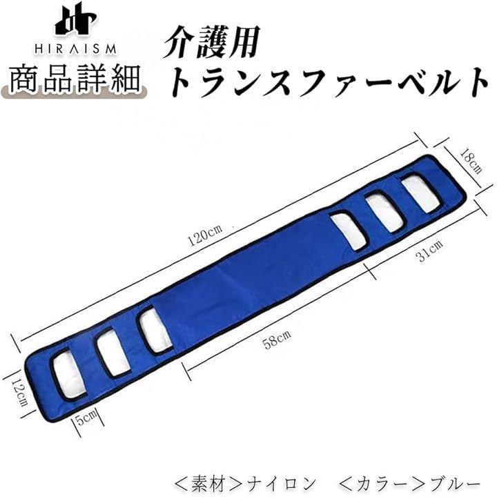「商品内容」介護用トランスファーベルト <サイズ>長さ約120cm x 幅約18cm <素材>ナイロン <カラー>ブルー