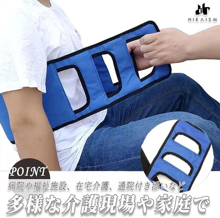 「介護現場で頼れる移乗サポート用」HIRAISMの介護用トランスファーベルトは、立ち上がりや移動をサポートするために設計された補助ベルトです。