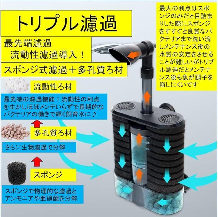 「トリプル濾過 方式採用。。」流動性濾過+スポンジフィルター+ 多孔質 ろ材入り。