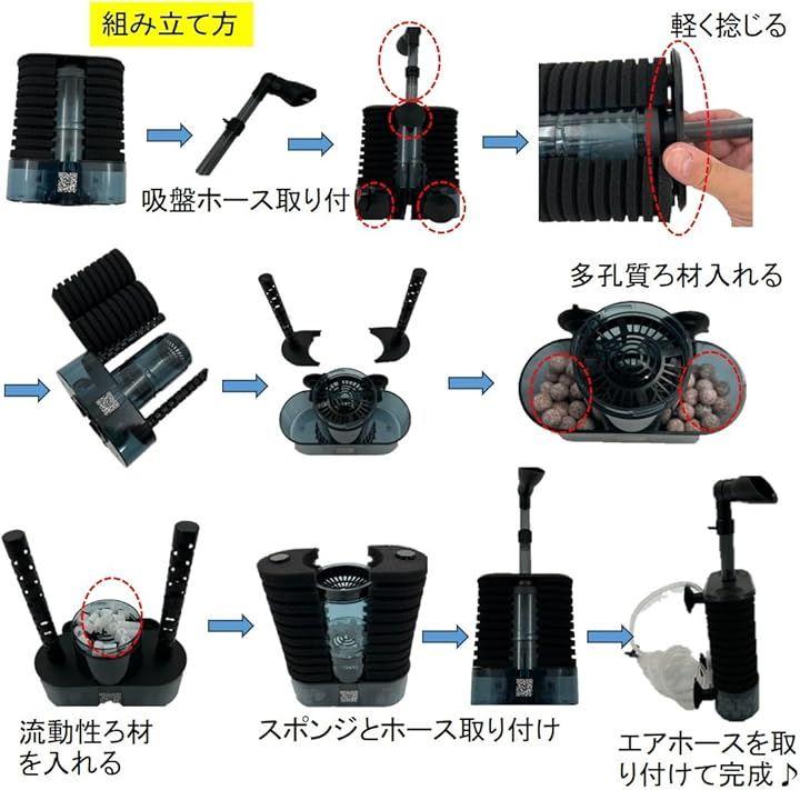 商品データ/サイズ:スポンジ付属 多孔質ろ材付属 流動ろ材 MBBR 付属 詳細なサイズとは画像参照